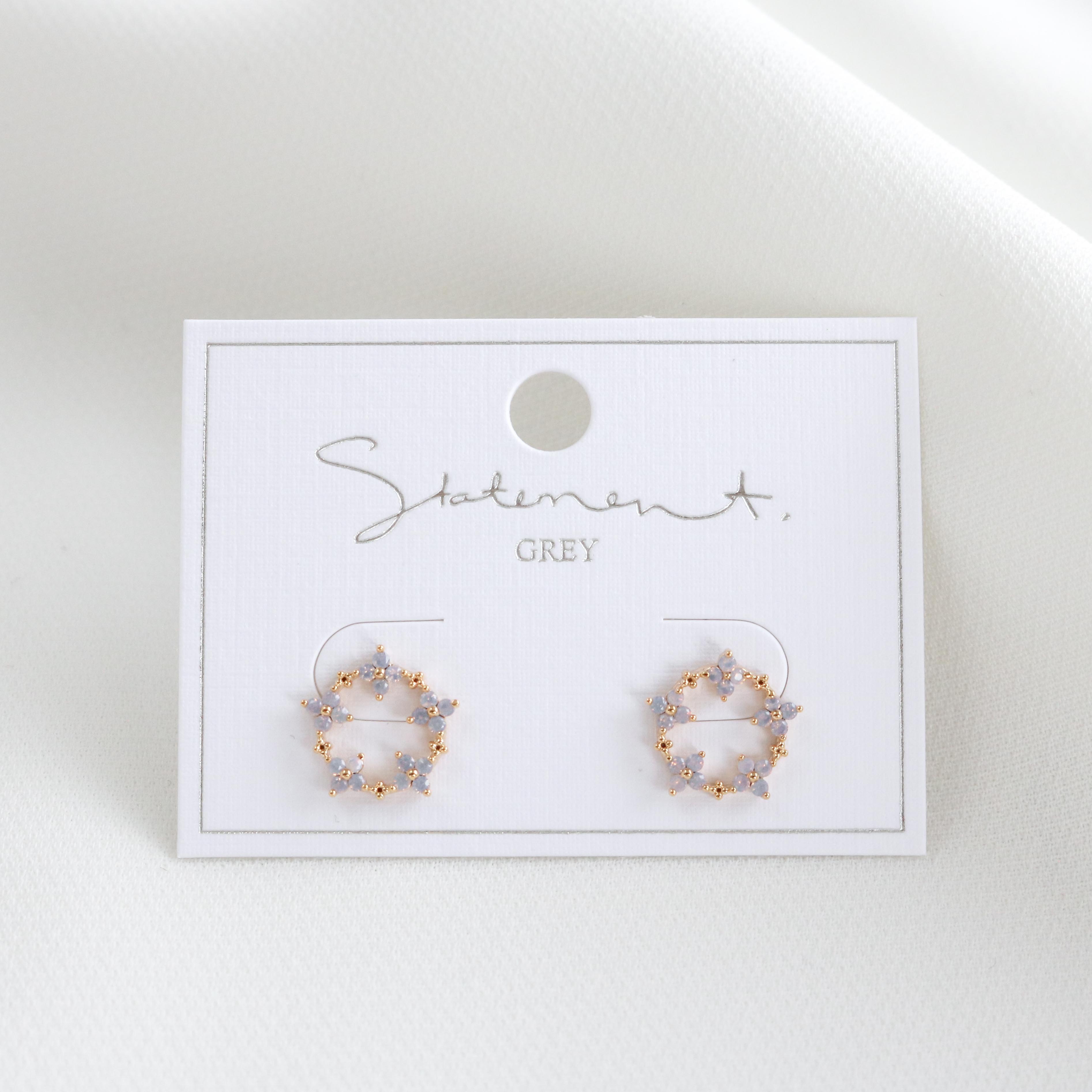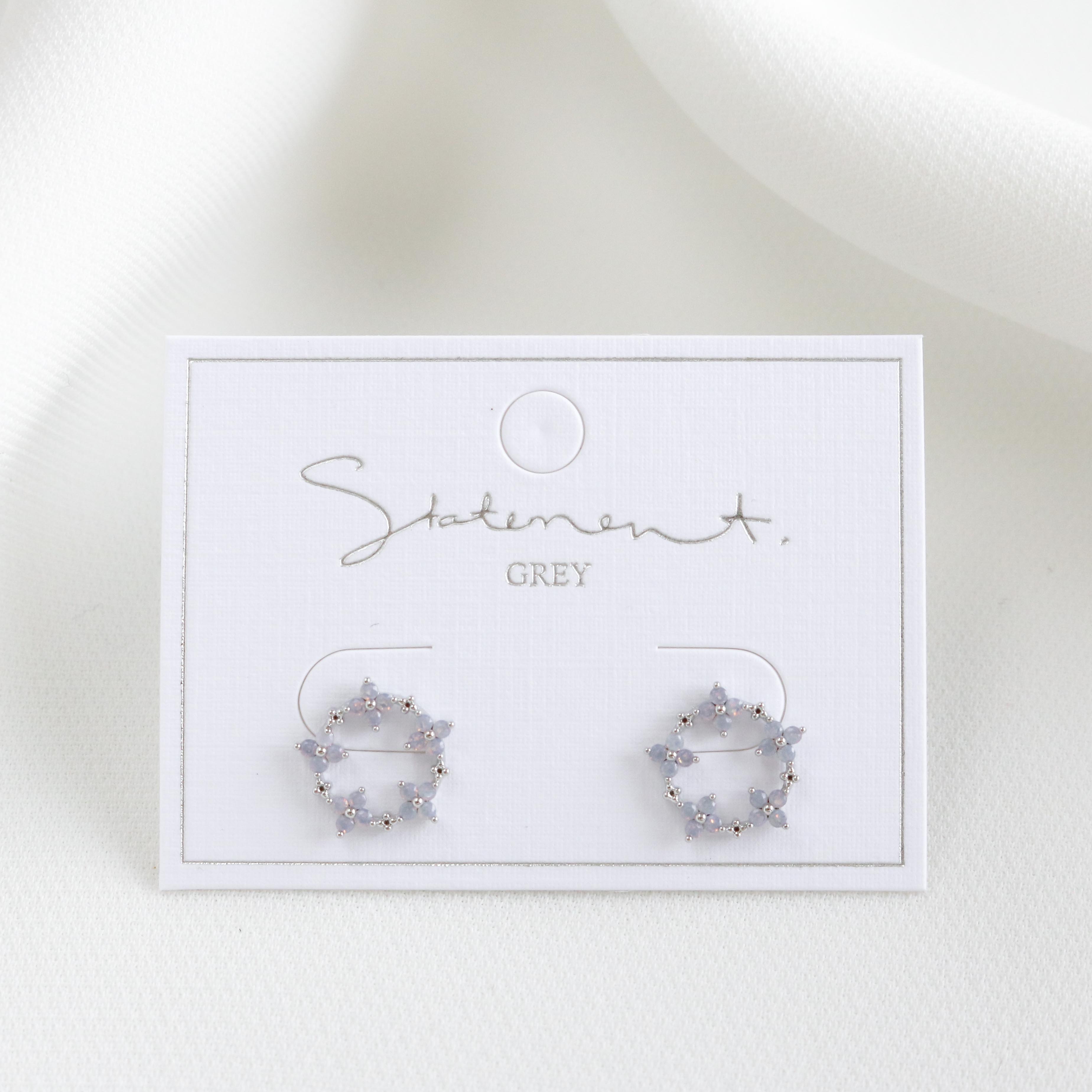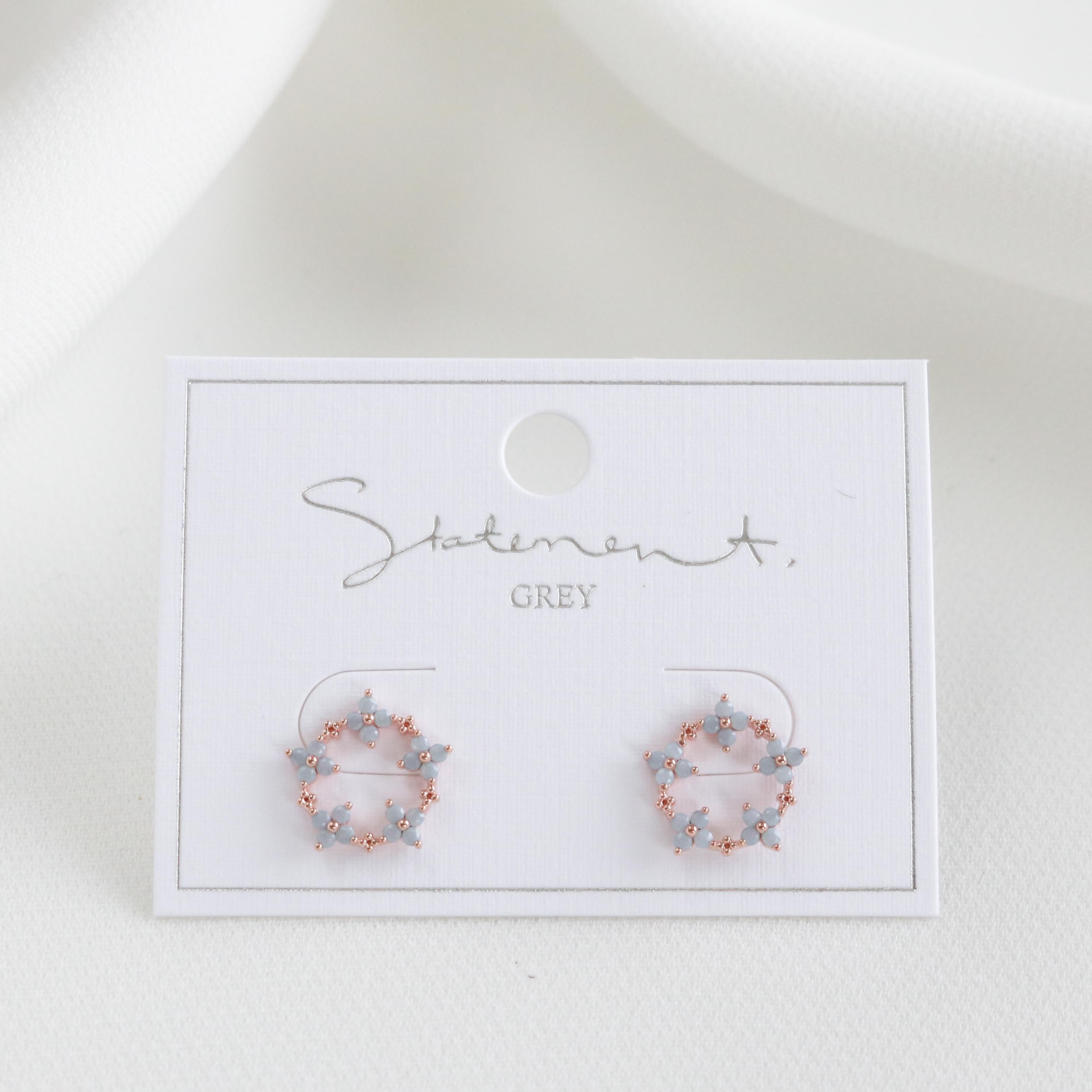 For the lovers of the cherry blossom season, this Blossom collection is for you. These front hoop earrings feature 4 flowers with beaded floral detailing in a wreath pattern. They come in 2 stone colours with your choice of opaque blue or subtle glistening pink.