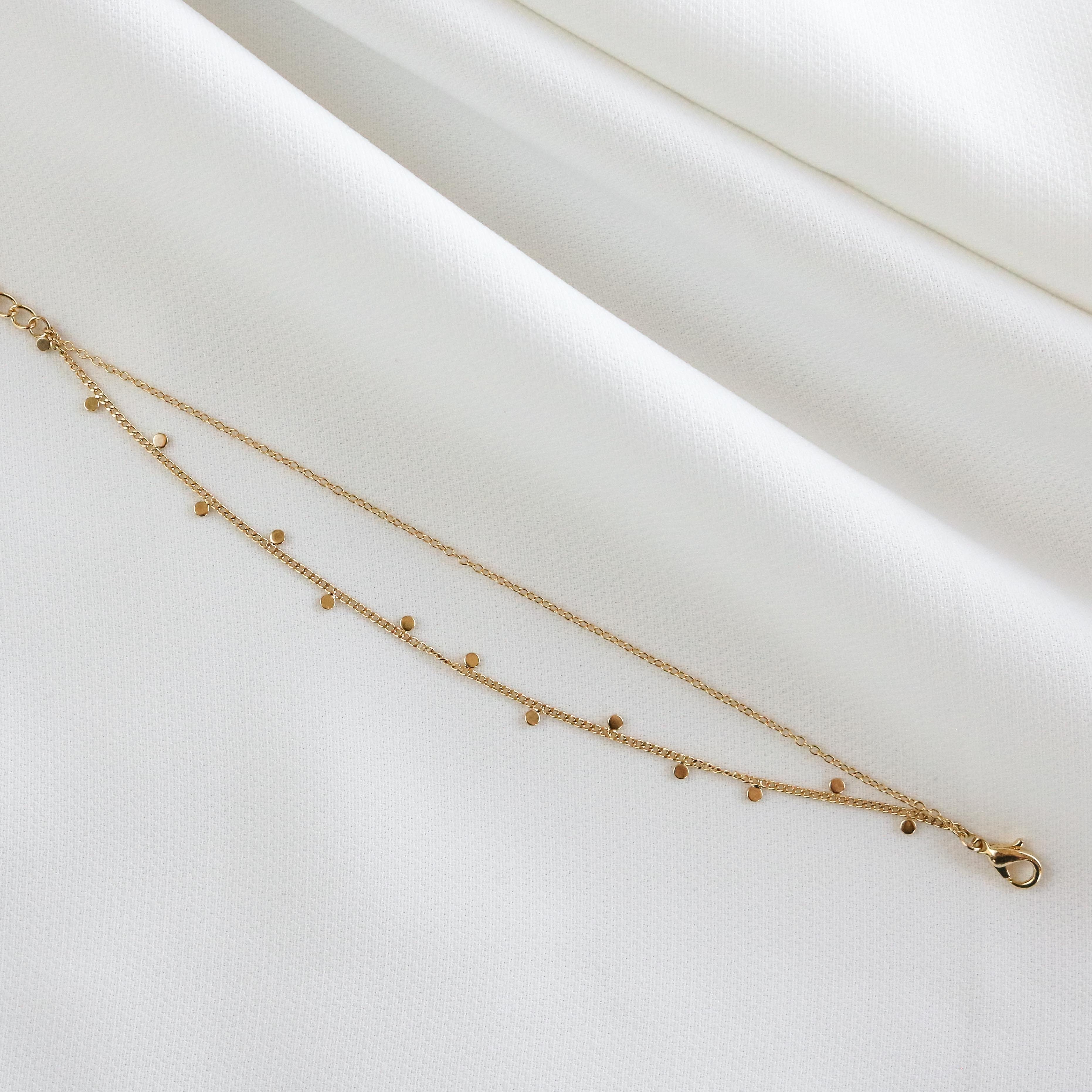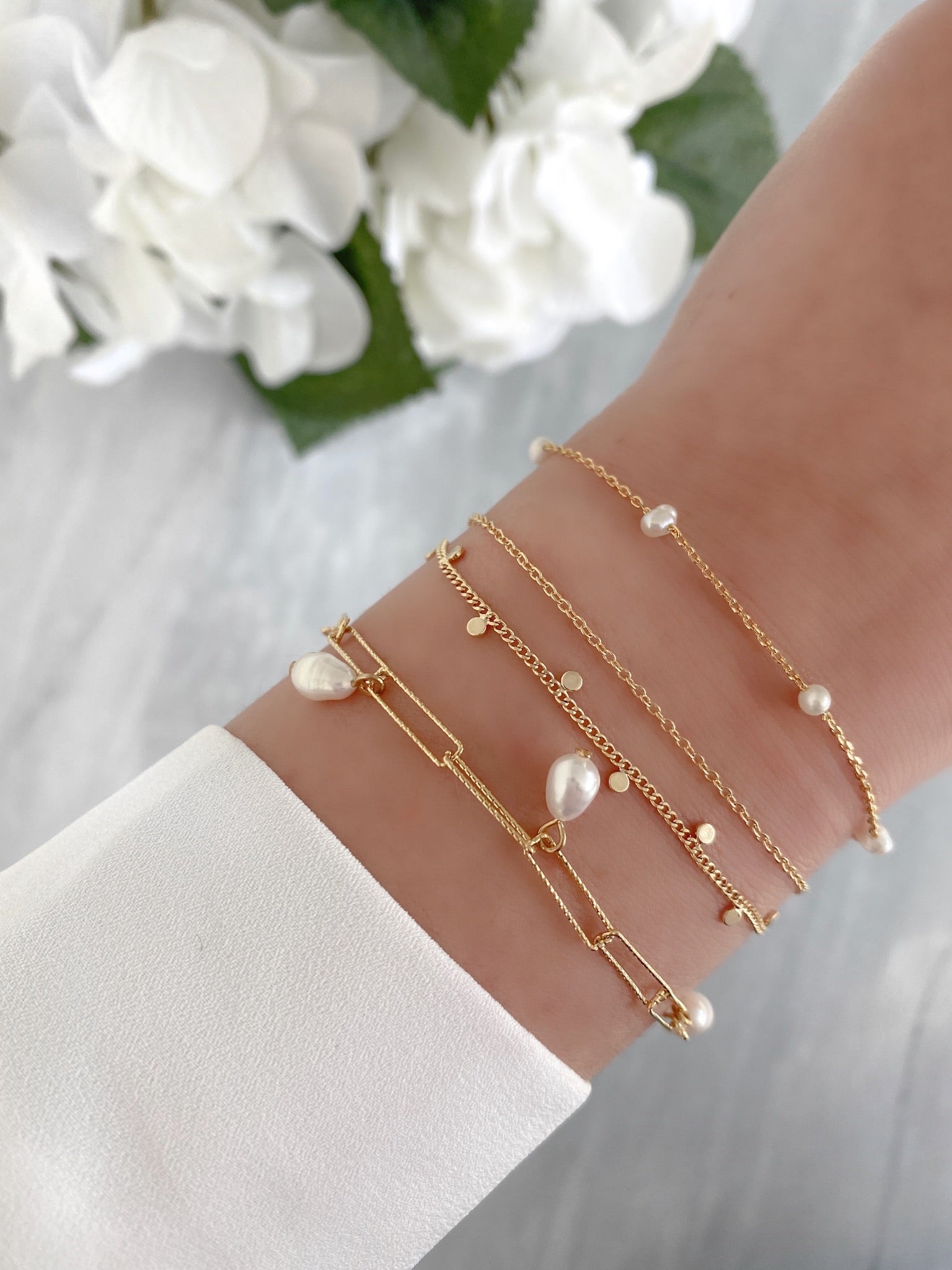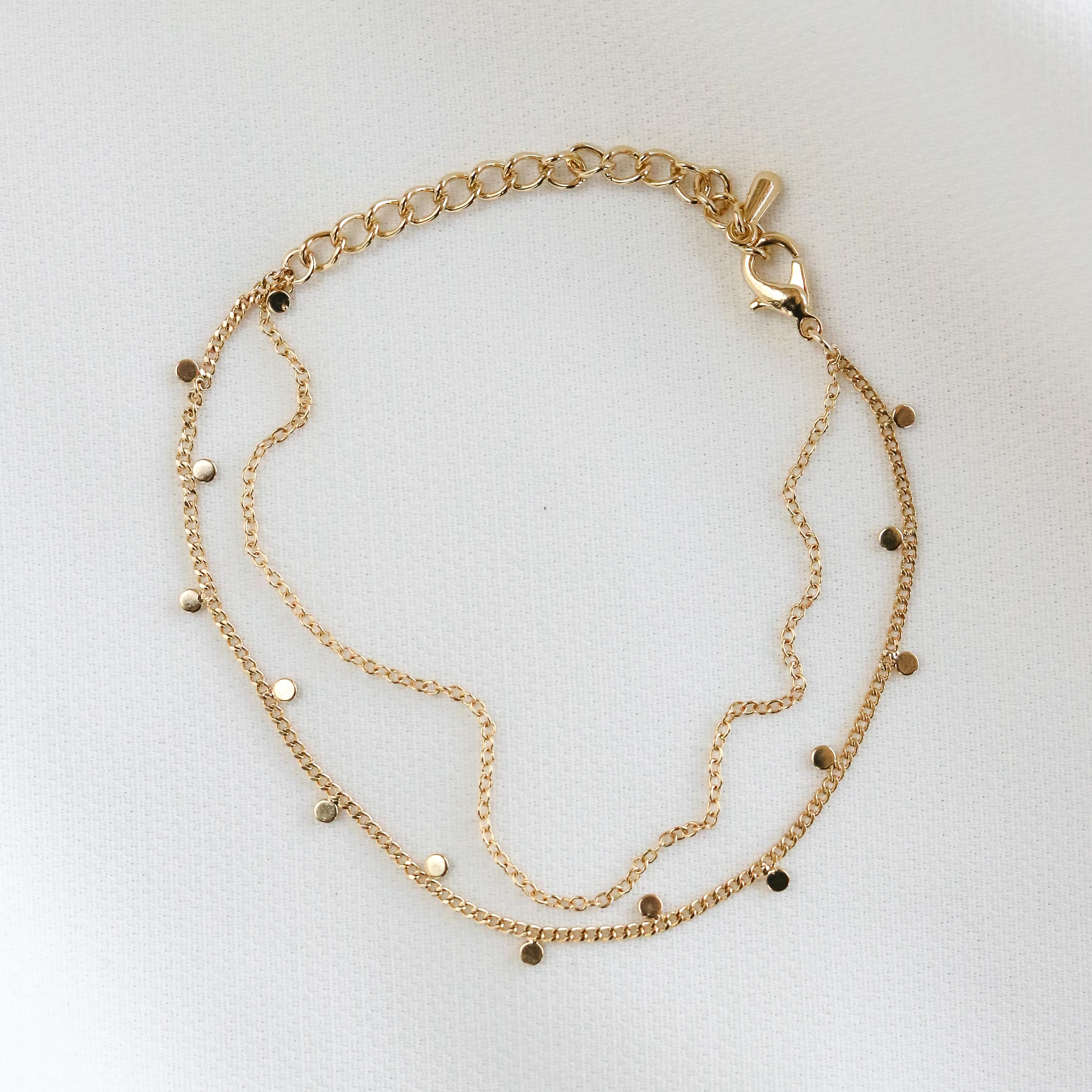 Two chains layered in one, link chain paired with a dotted Cuban chain, the Clara bracelet glimmers and shines as you move.
