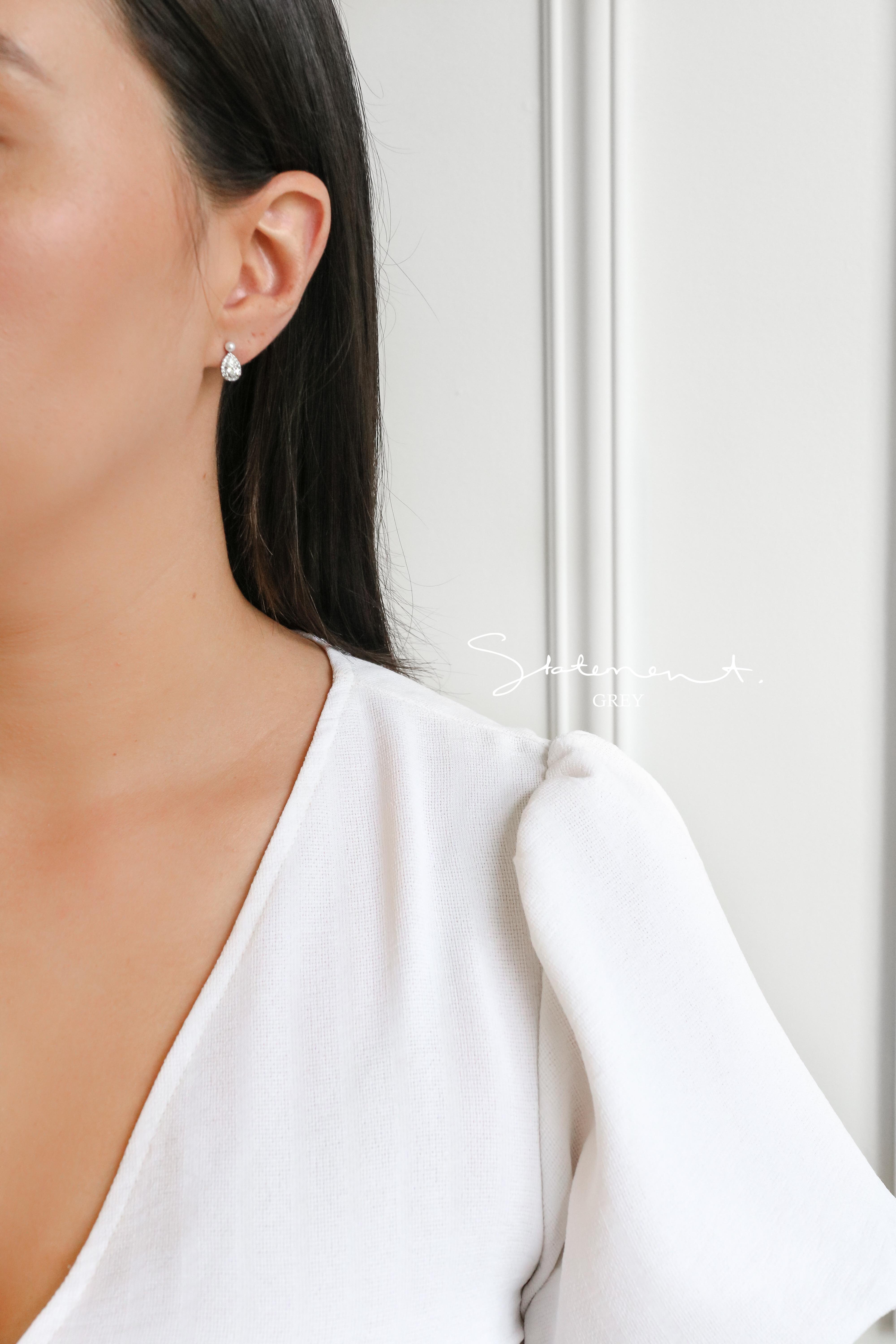Dainty yet striking, the Noui earrings feature a pear-shaped crystal with a crystal-encrusted halo and are adorned with a pearl at the top. These charming earrings are perfect for the bride, bridesmaids, and the mother of the bride.