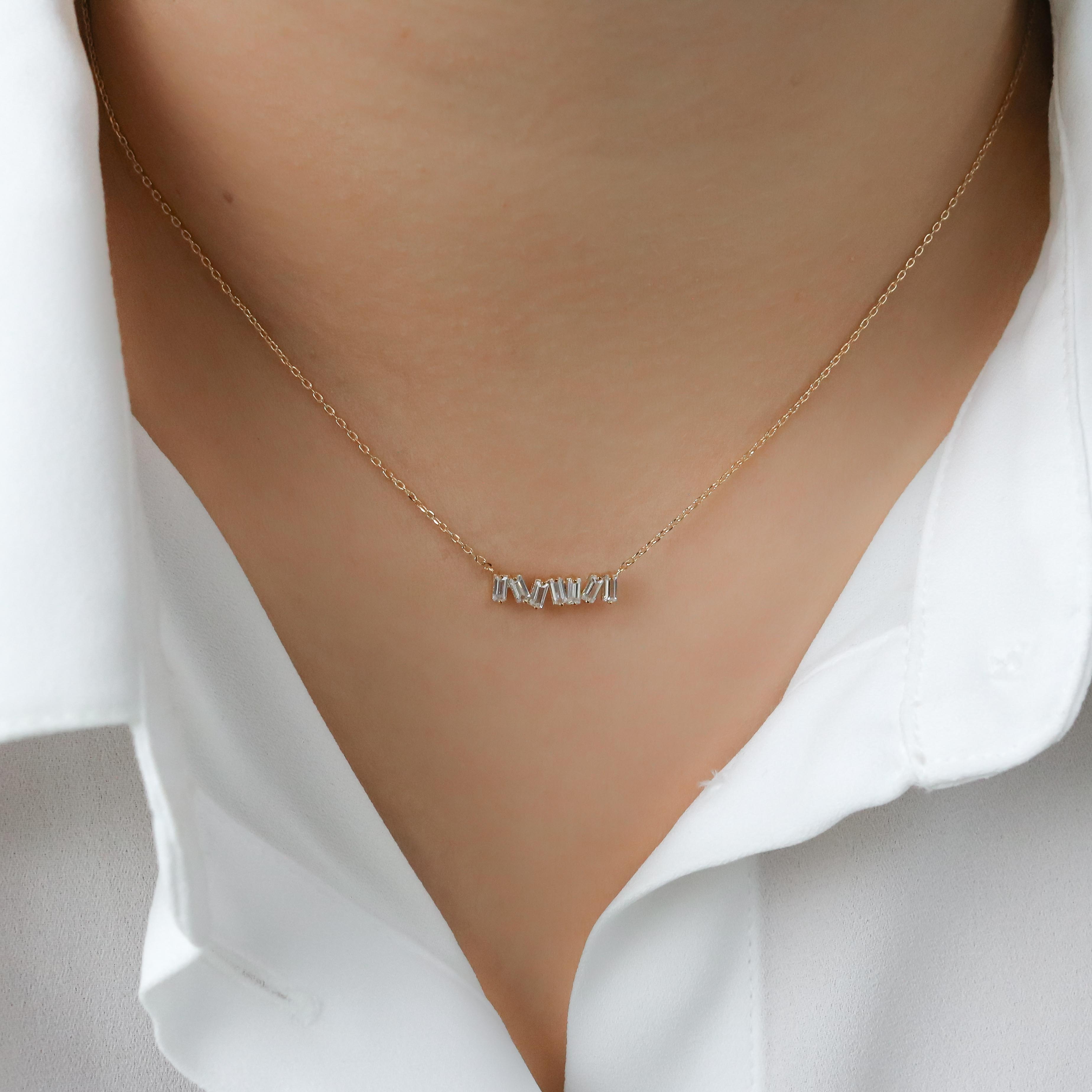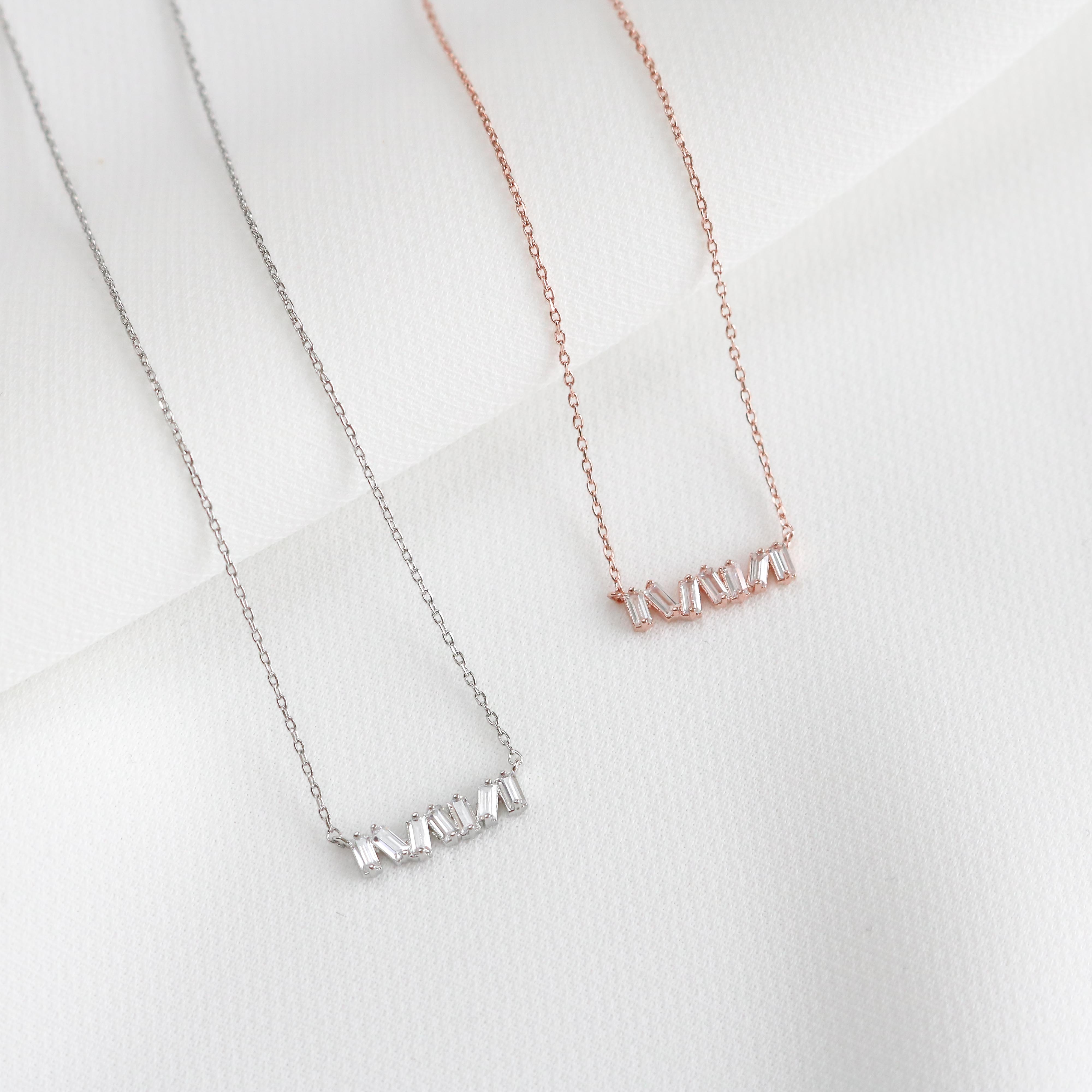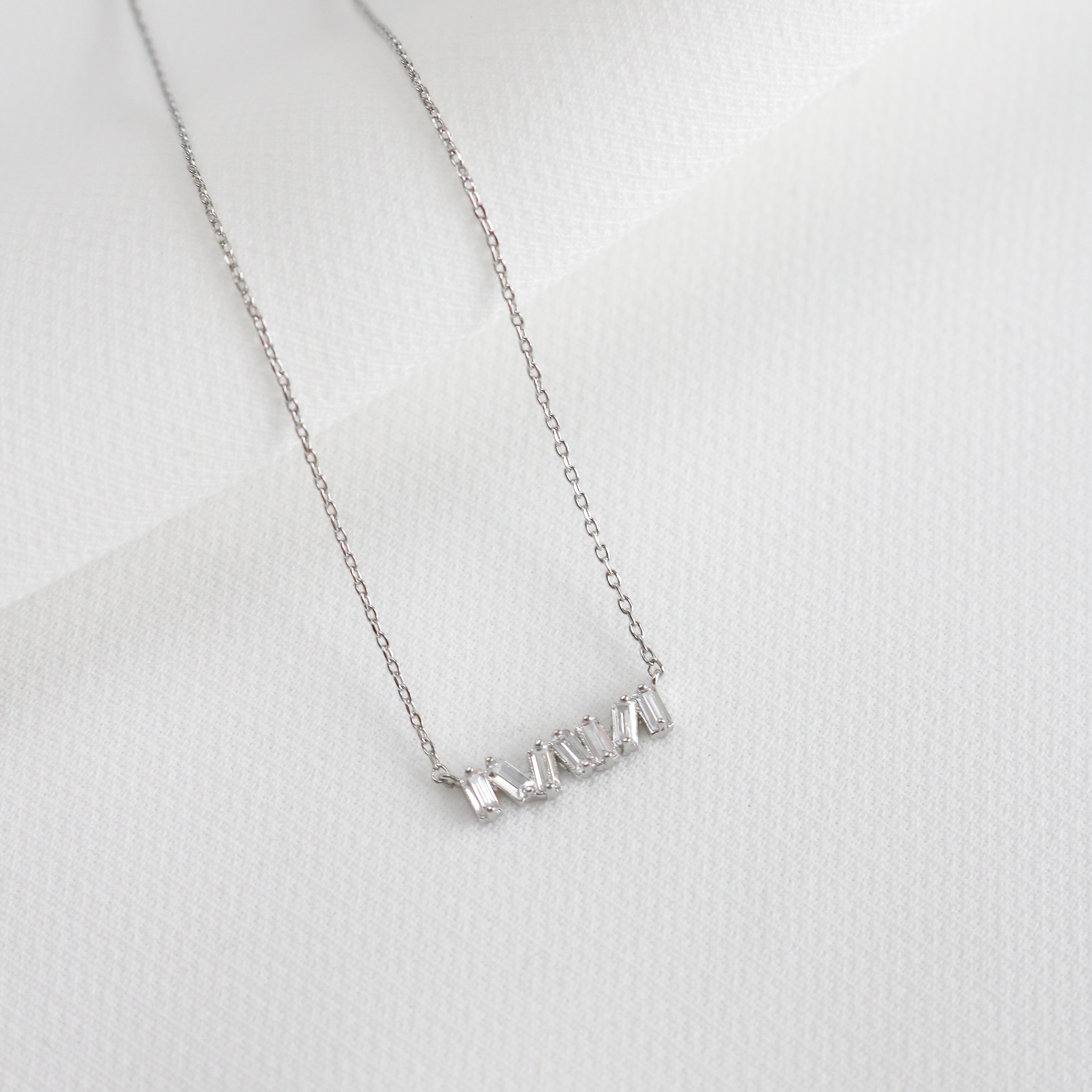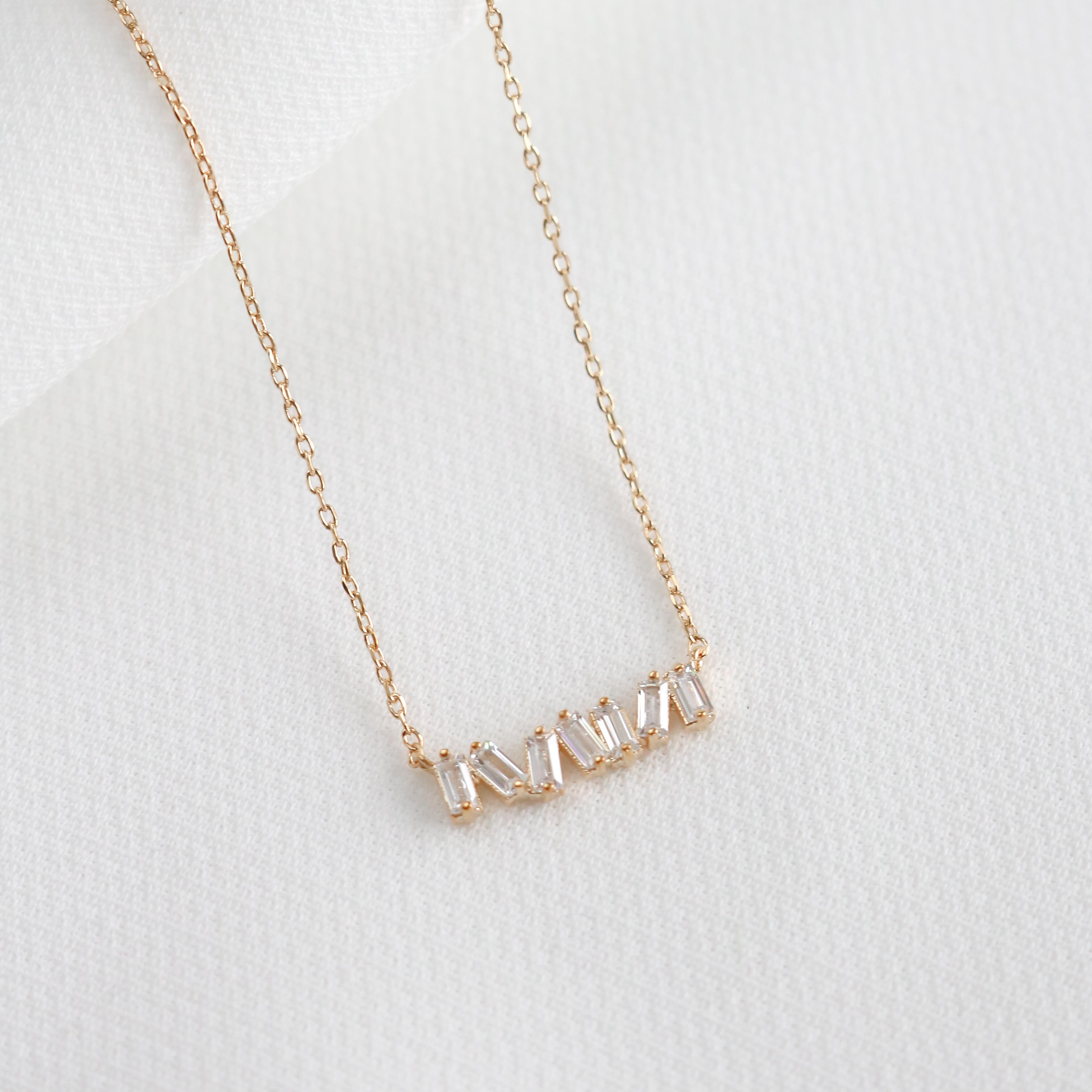 Featuring an offset pattern of baguette crystals, the Aster necklace will draw you in with its lovely charm.