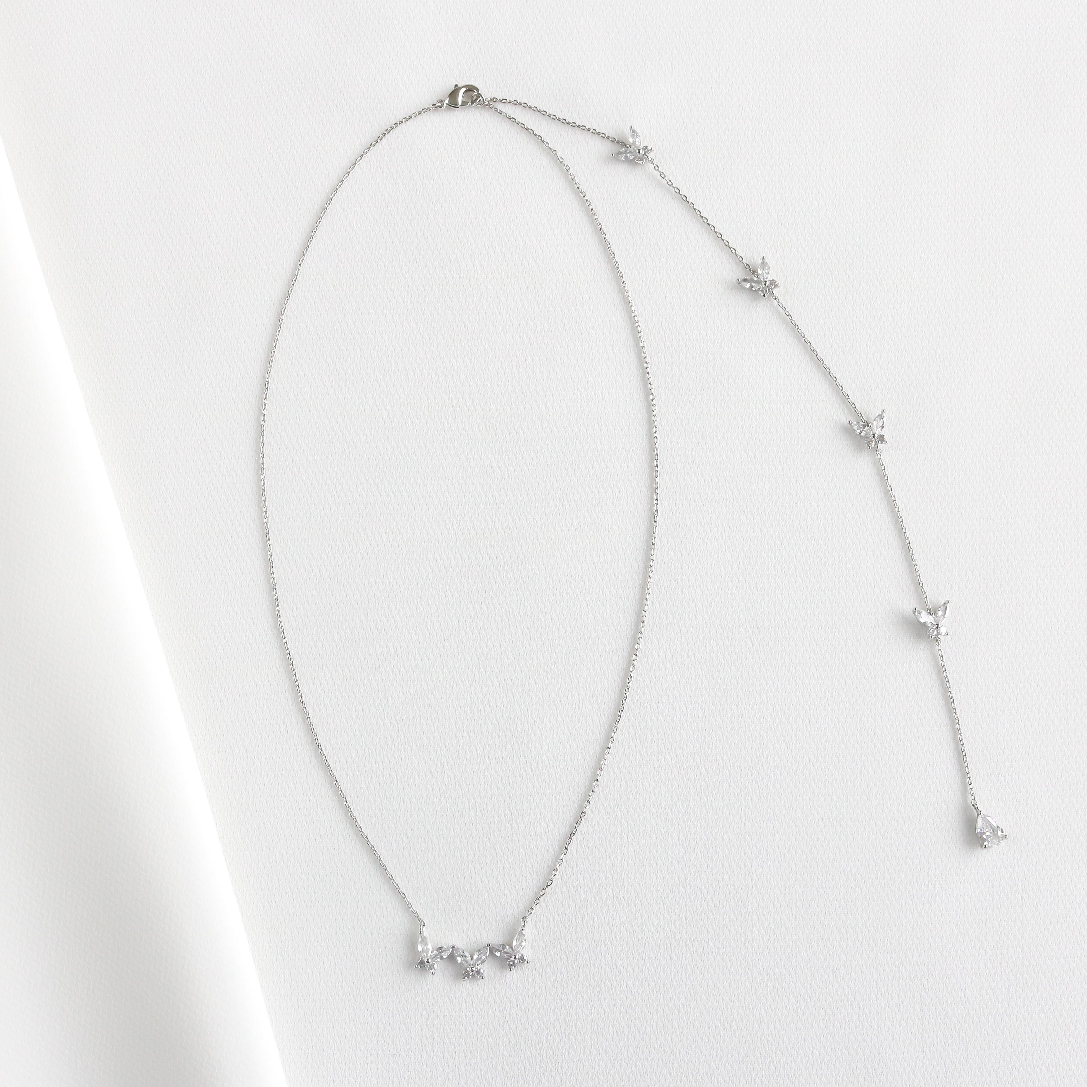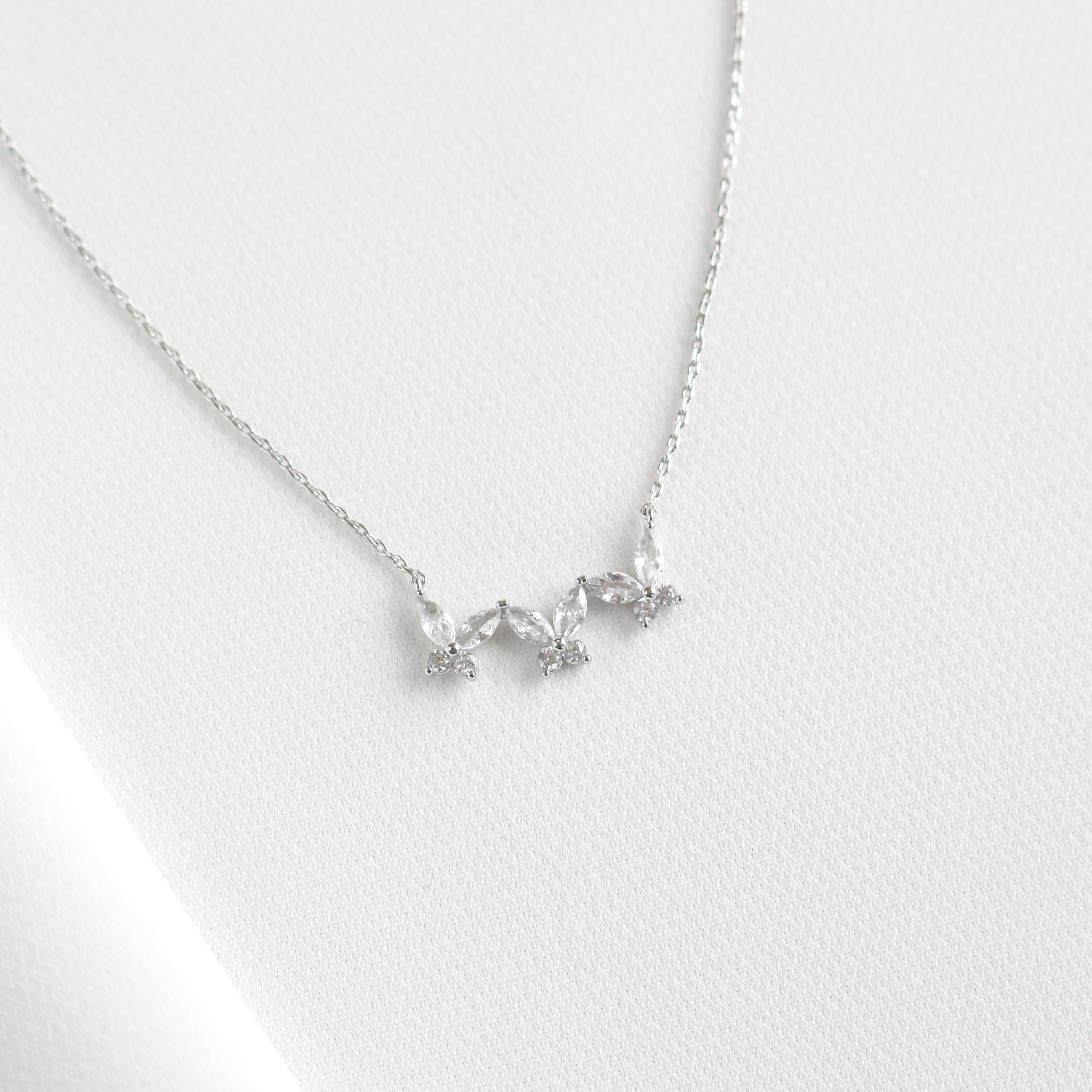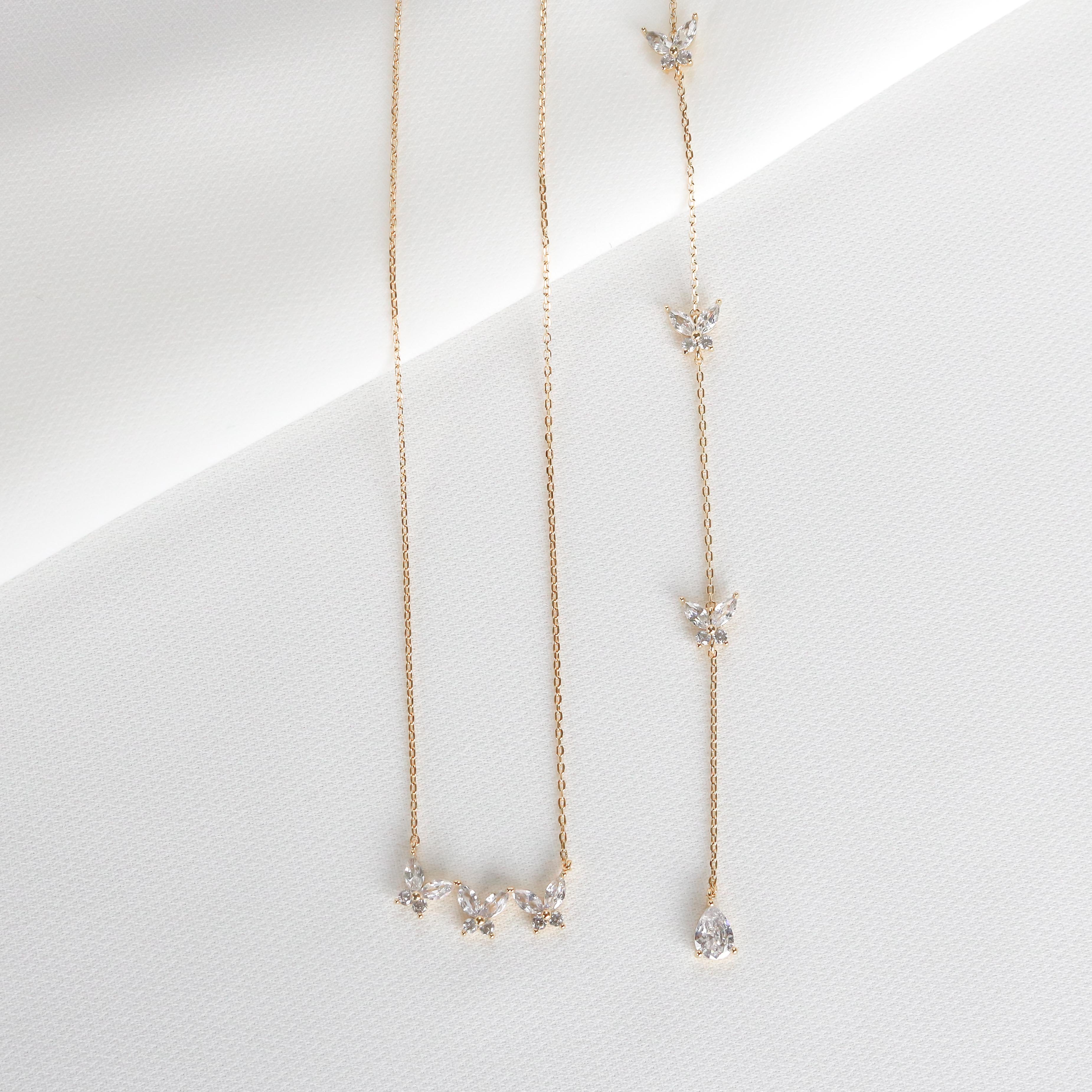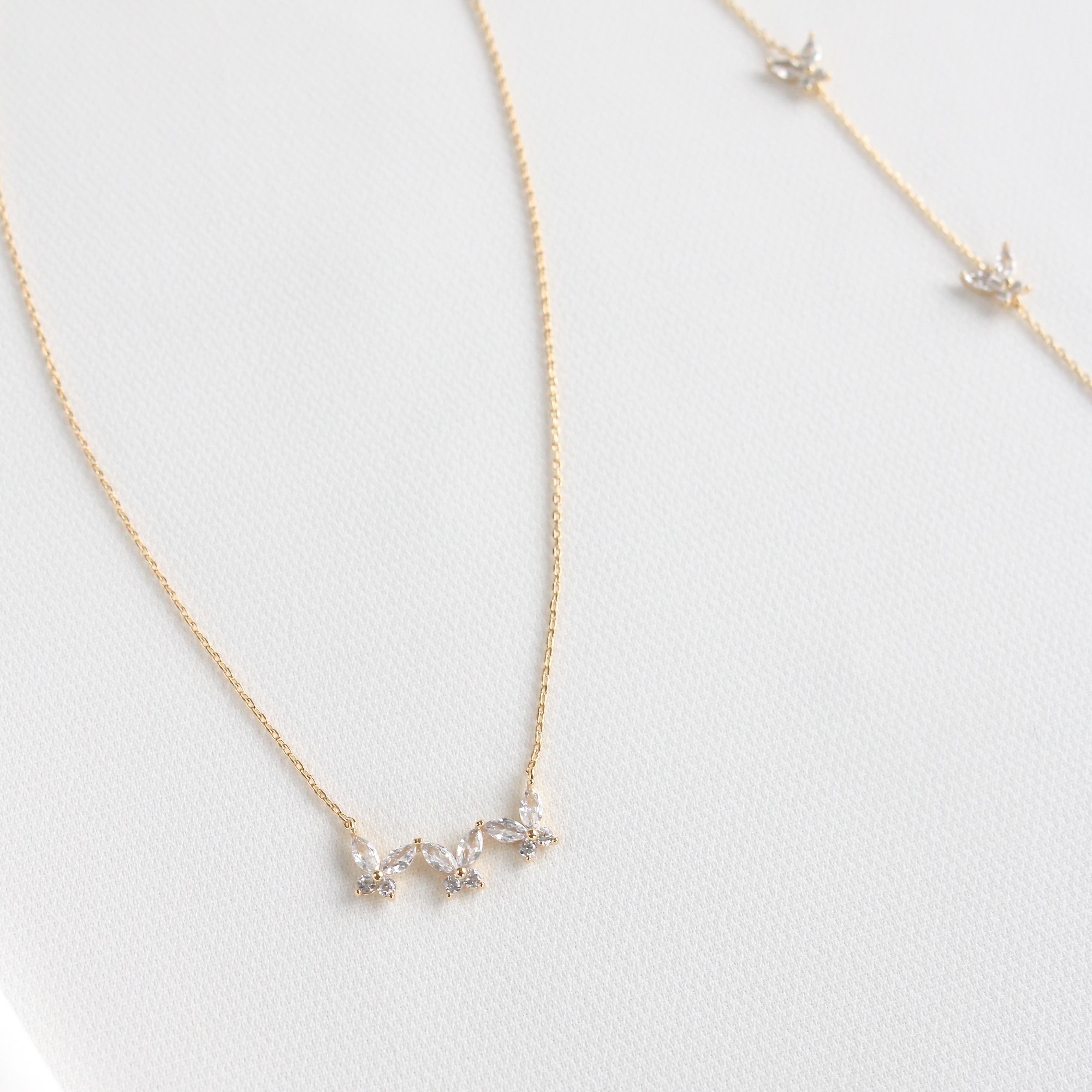 Inspired by our dreamy, customer favourited butterfly collection, this backdrop necklace has three butterflies in the front and a line of these magical beauties in the back.