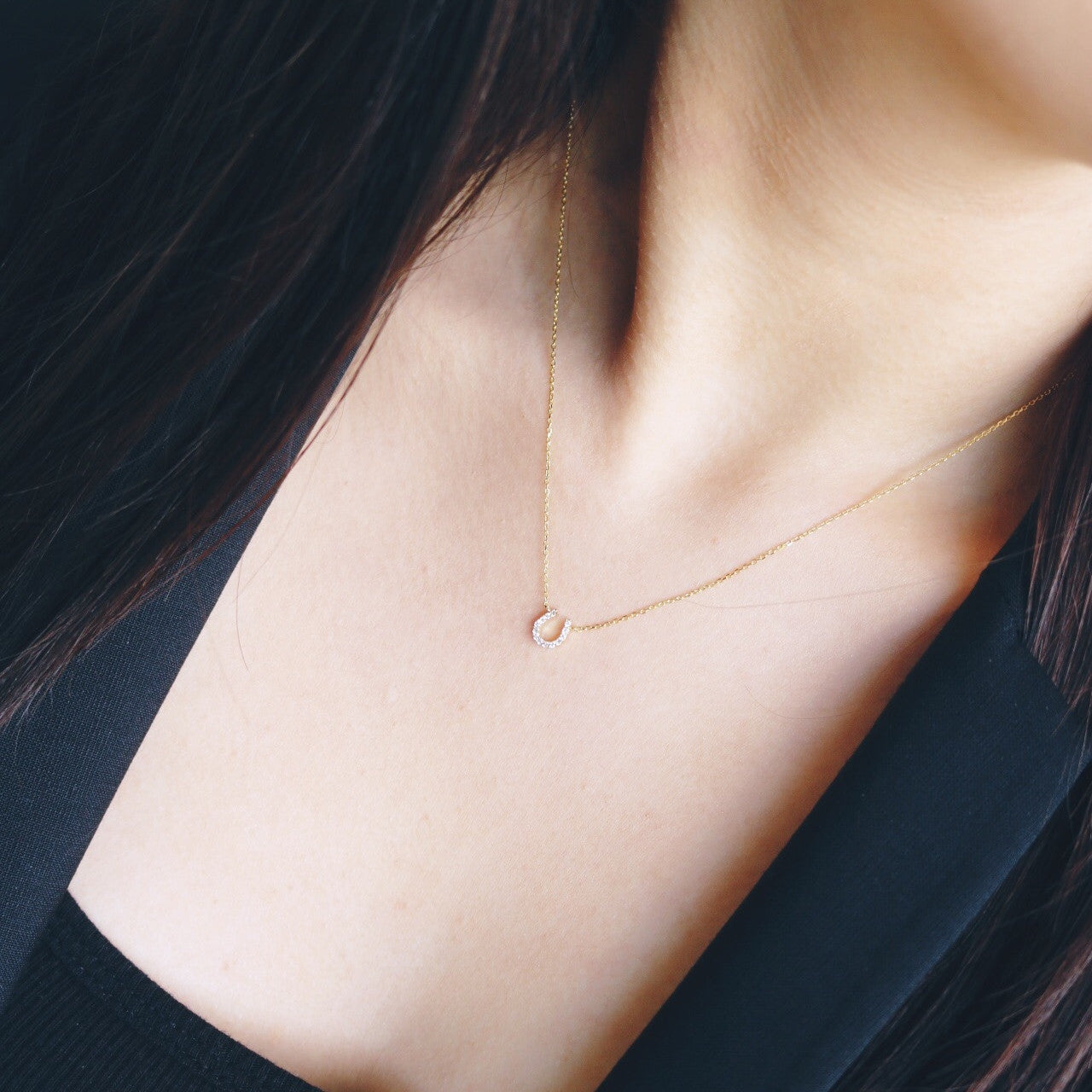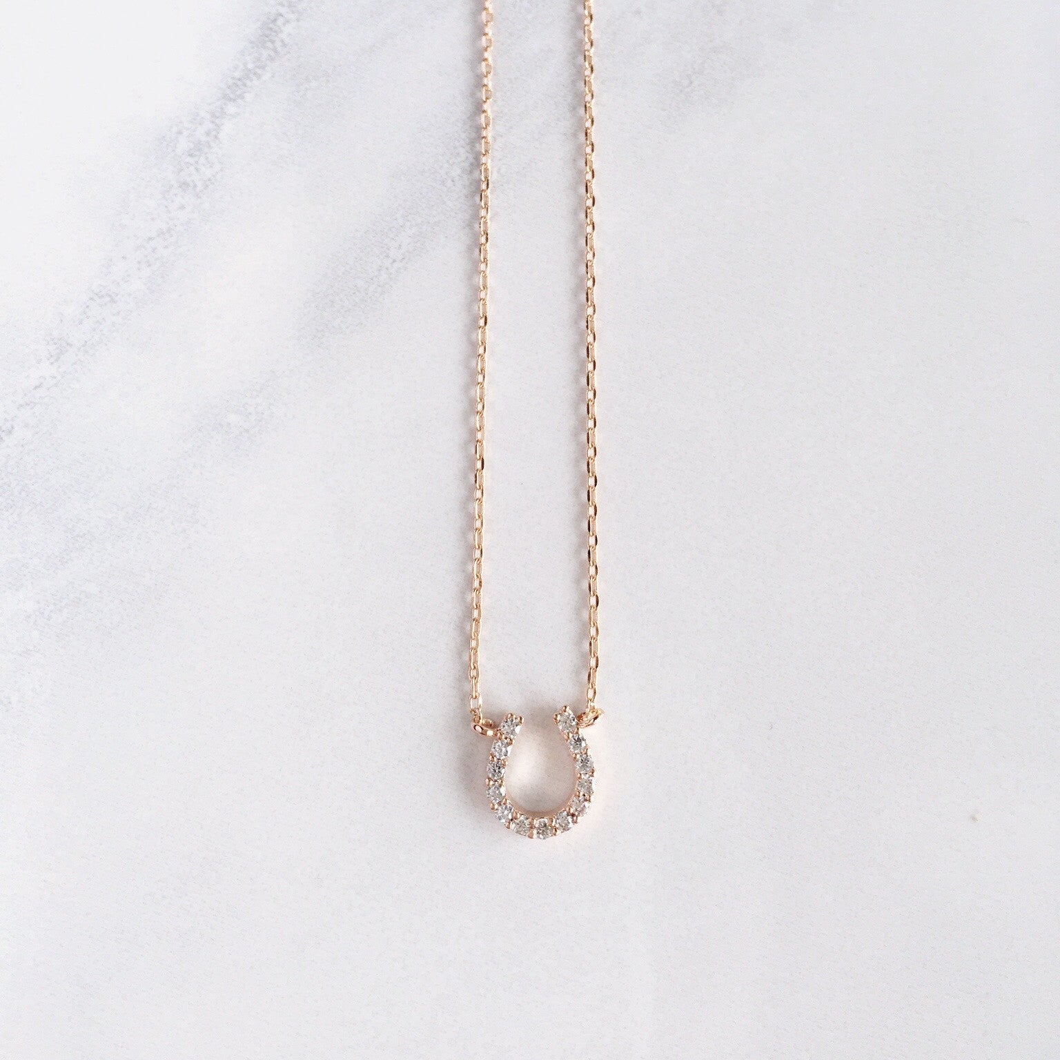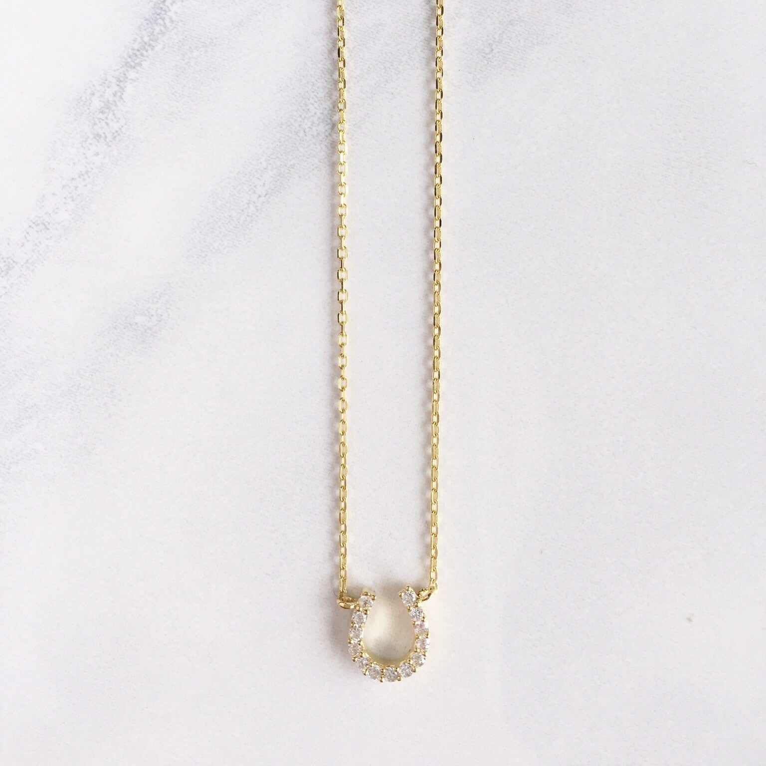 Crystal Encrusted Horseshoe Necklace. Representing good luck and good fortune, the Horseshoe pendant reminds you to be confident everyday you put it on. Made with high quality materials, this necklace is perfect for layering with other necklaces. All our necklaces also come with a small crystal pendant in the back so you sparkle from all sides!