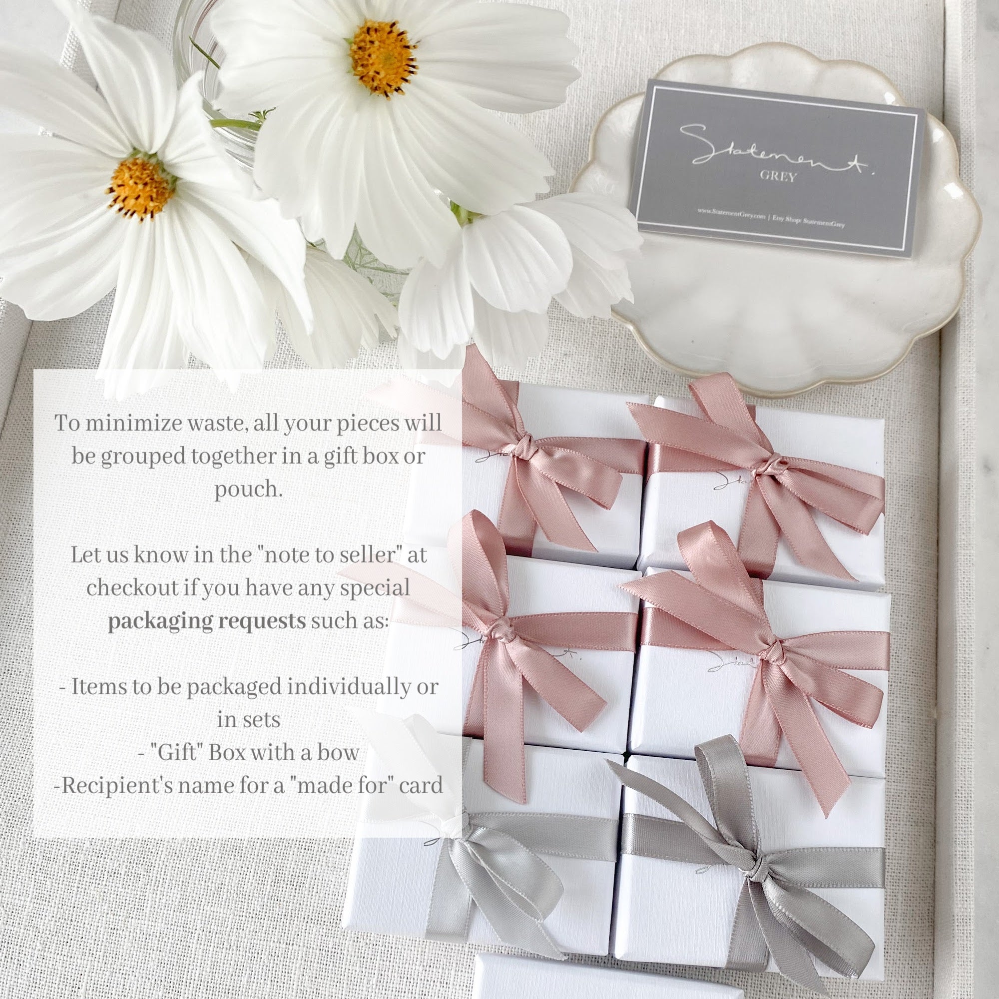 Orders are gift ready in a box or pouch. Specific packaging requests? Let us know in the "+ Add Order Note" in Cart.