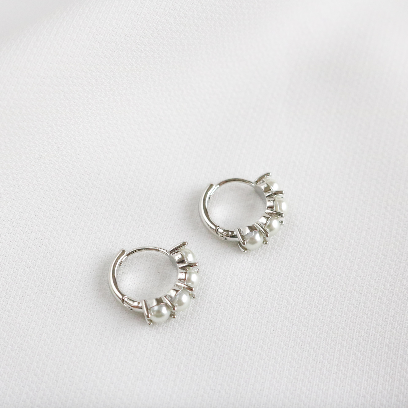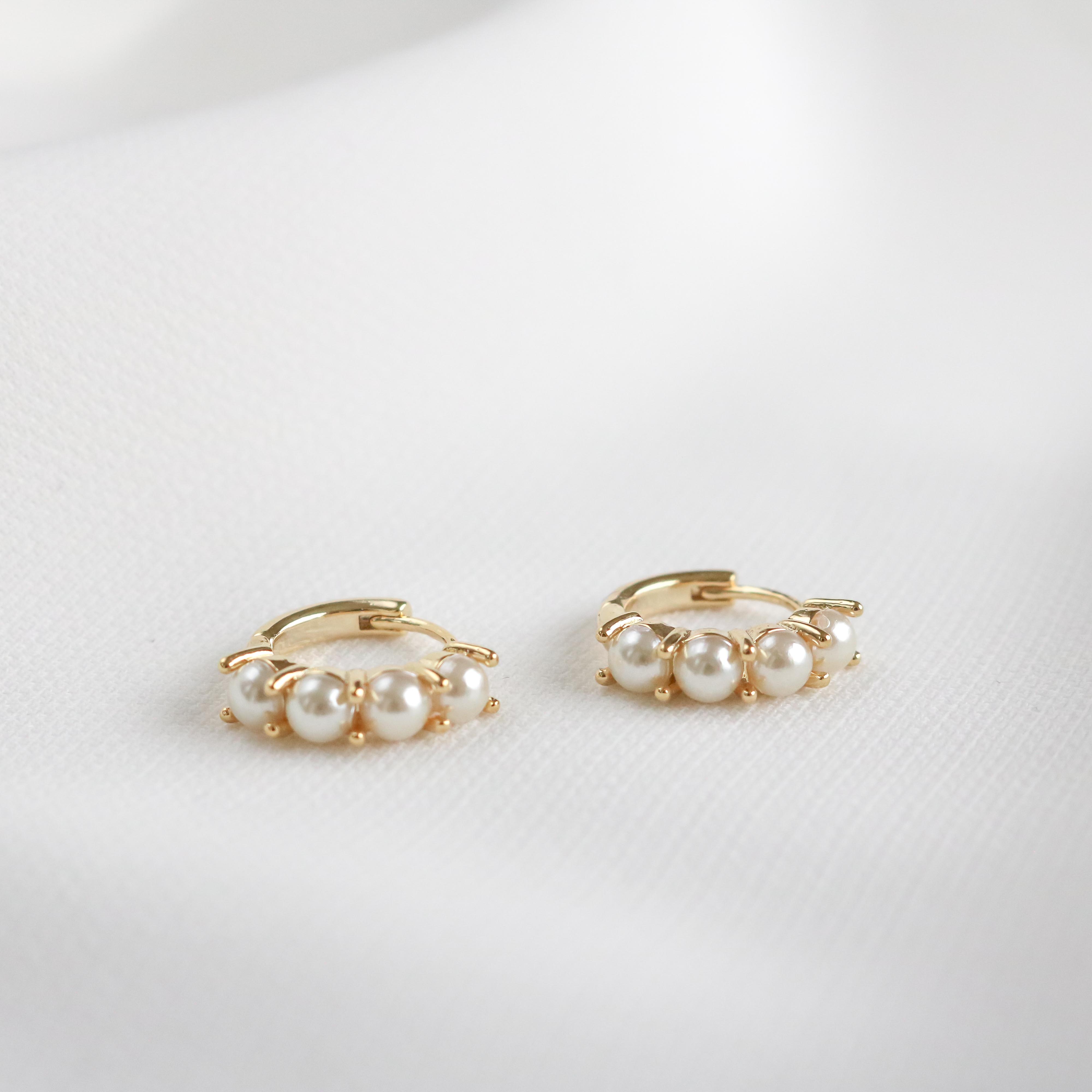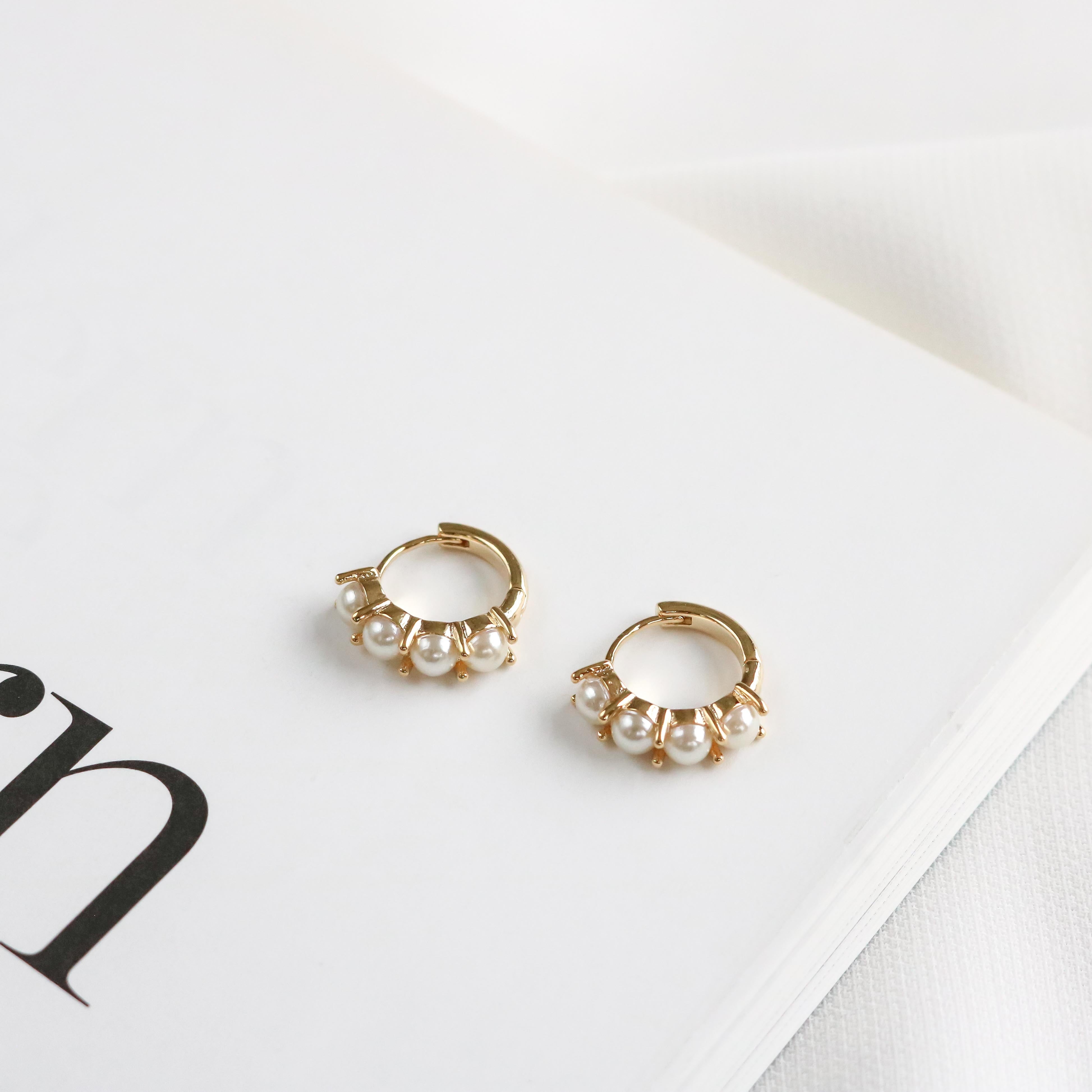 Simple and trendy, the Heloise hoop earrings have four pearls attached snug around the hoop. They add that stylish, and feminine note to your OOTD.