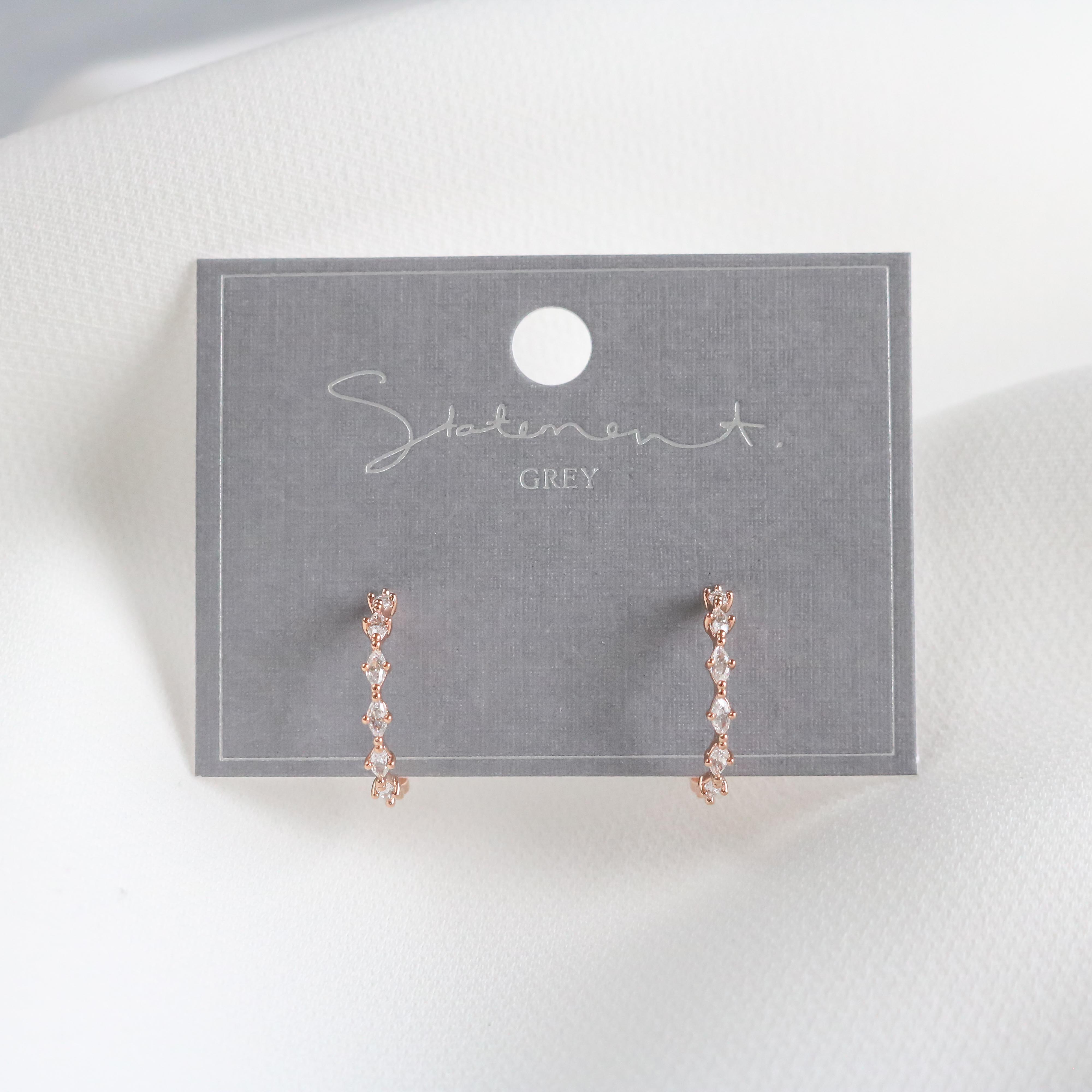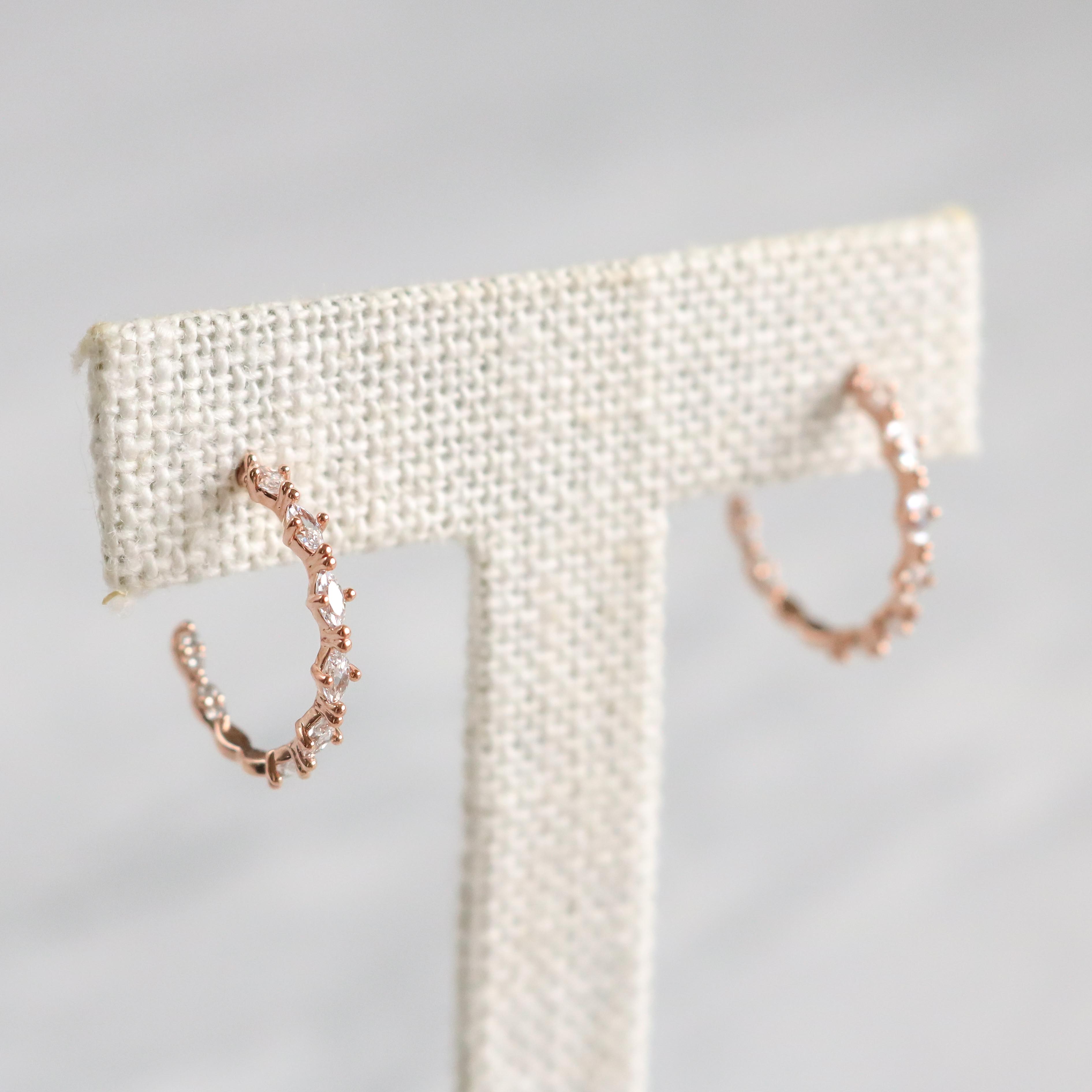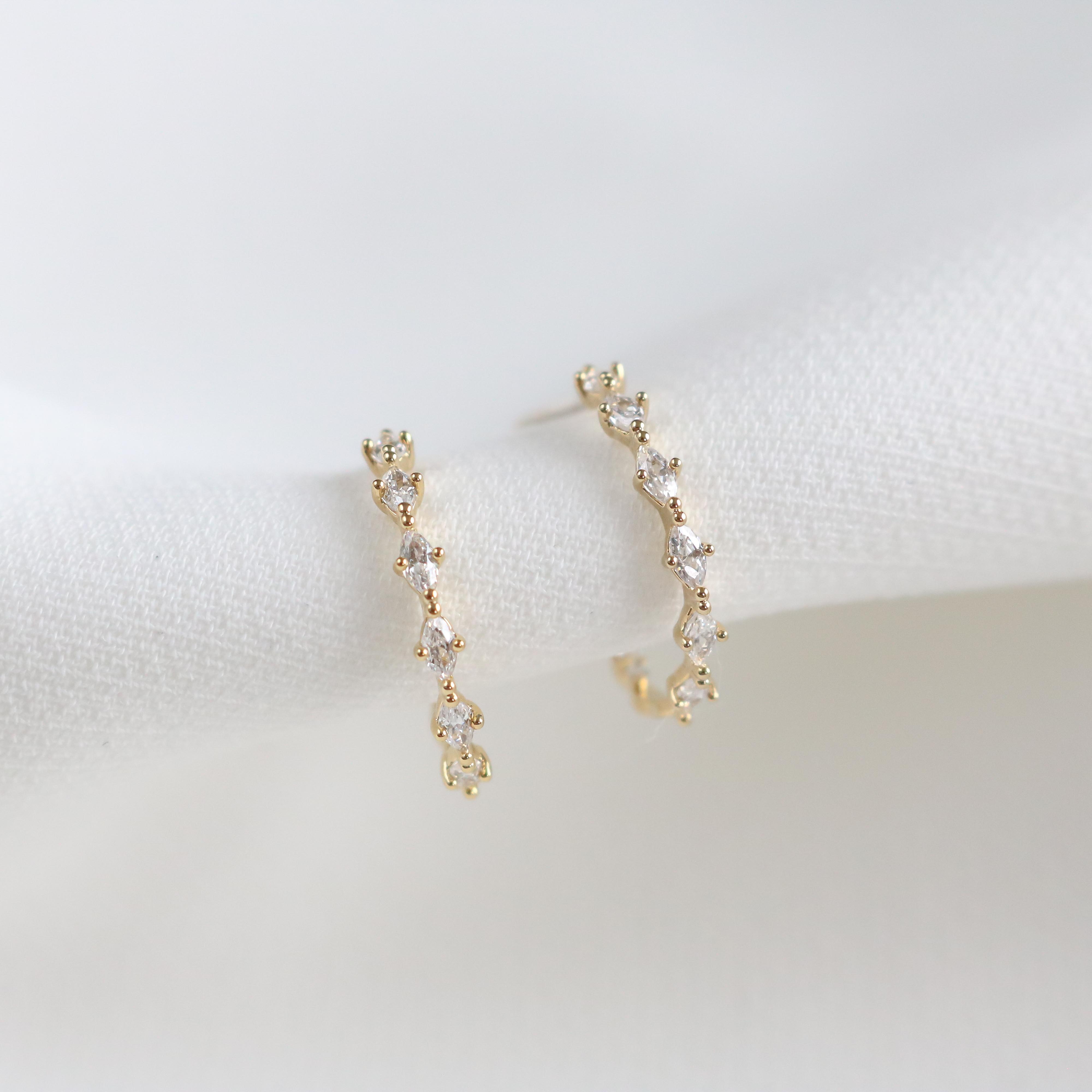 The Meri Hoop Earrings have a row of 6 marquise crystals around the hoop, with 4 round crystals facing forward at the end.