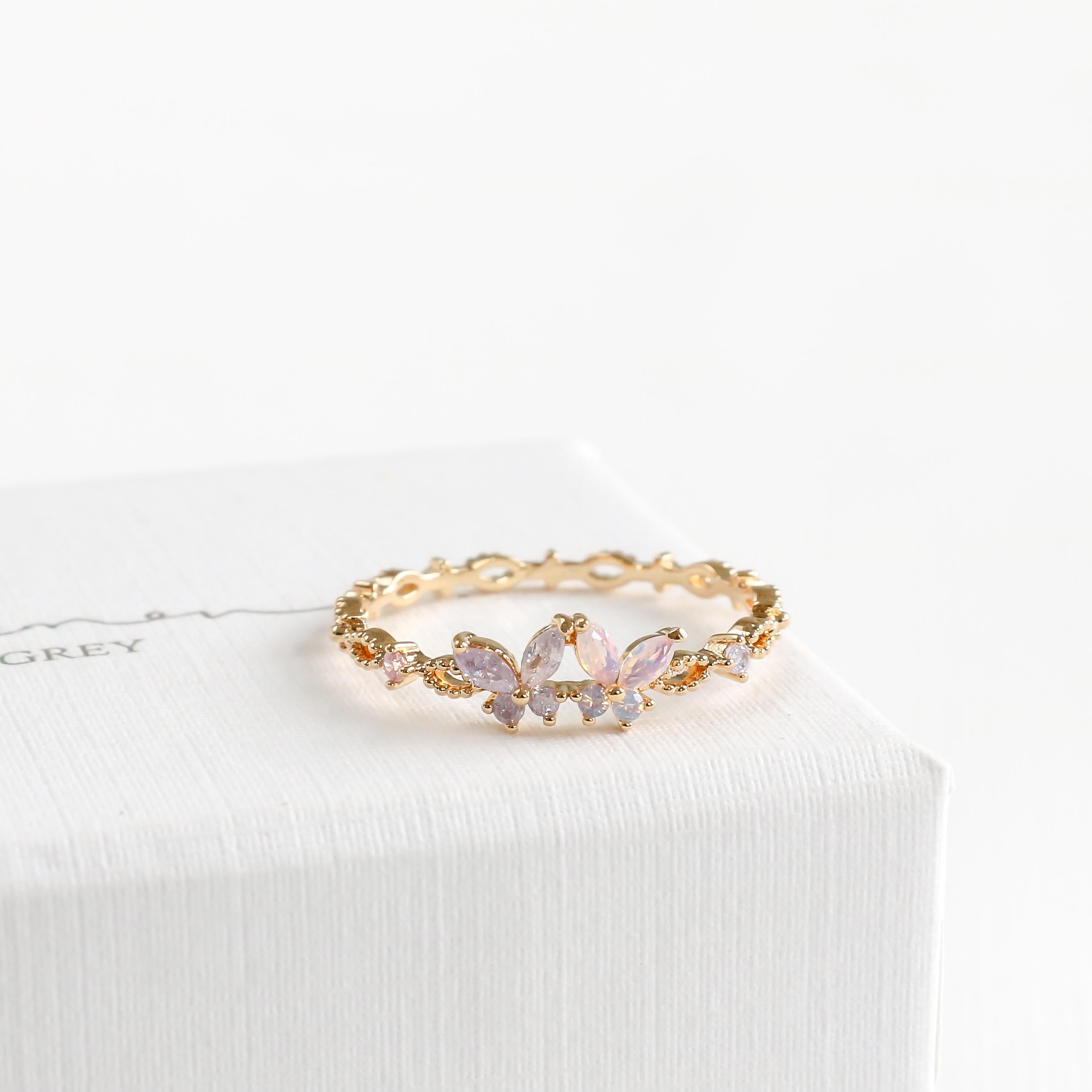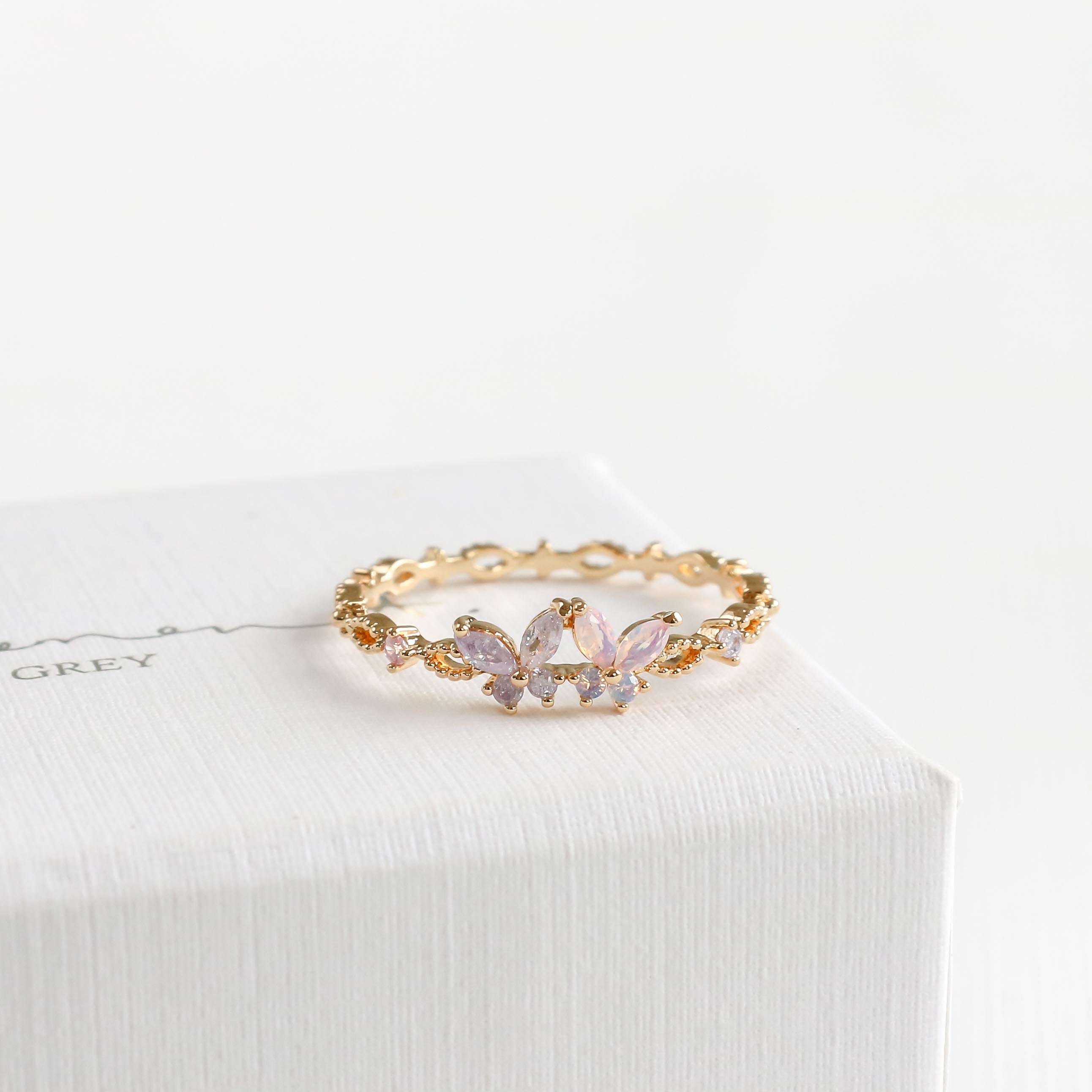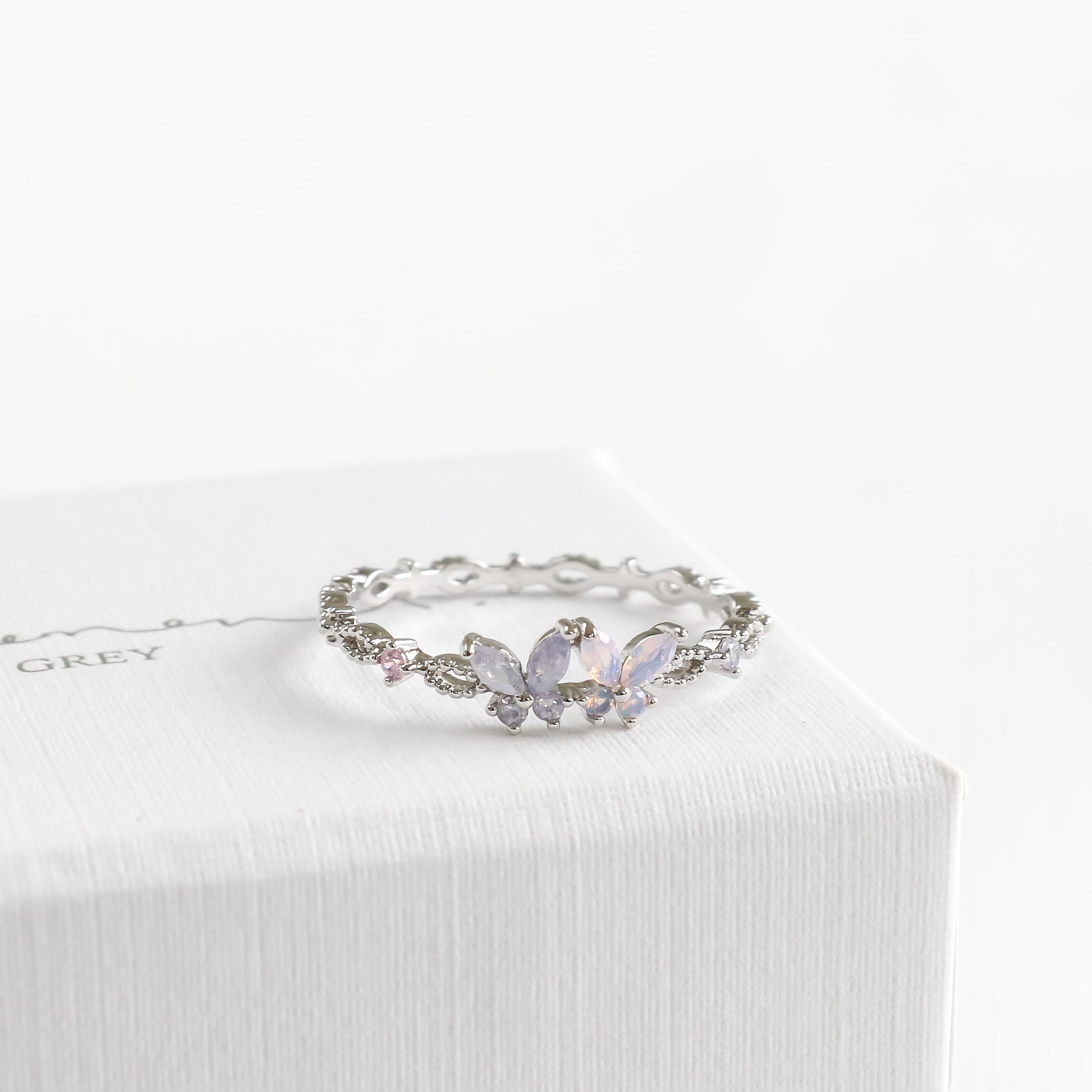 The ultimate BFF ring, adorned with twin butterflies in gorgeous shades of lavender purple and pastel pink. This ring, complete with sparkling gems, will become you and your bestie's go-to favourite.