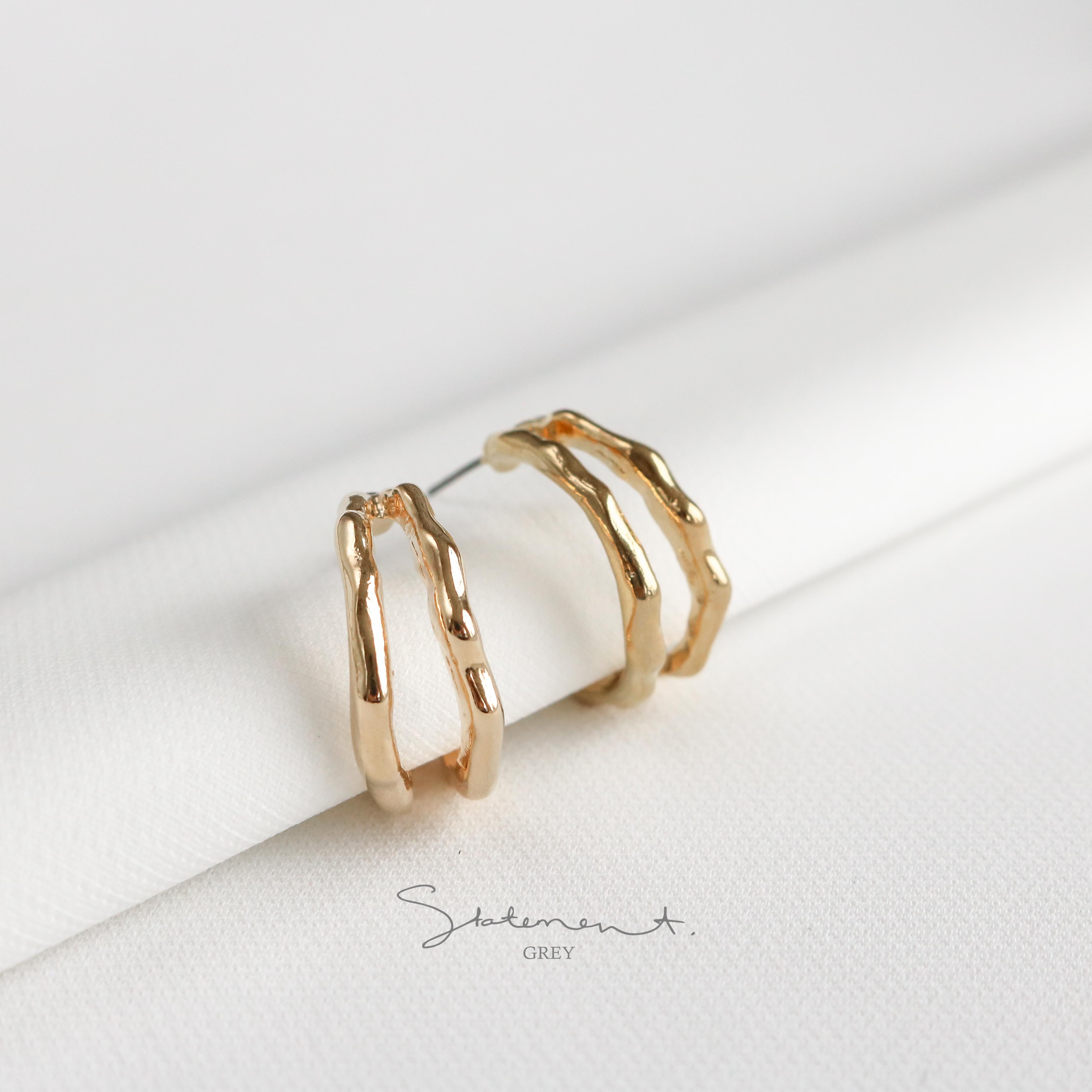 These bold and daring earrings feature two textured crescent hoops that meet together for an aesthetically stimulating piece. Put these one and you'll be feeling like a boss all day.