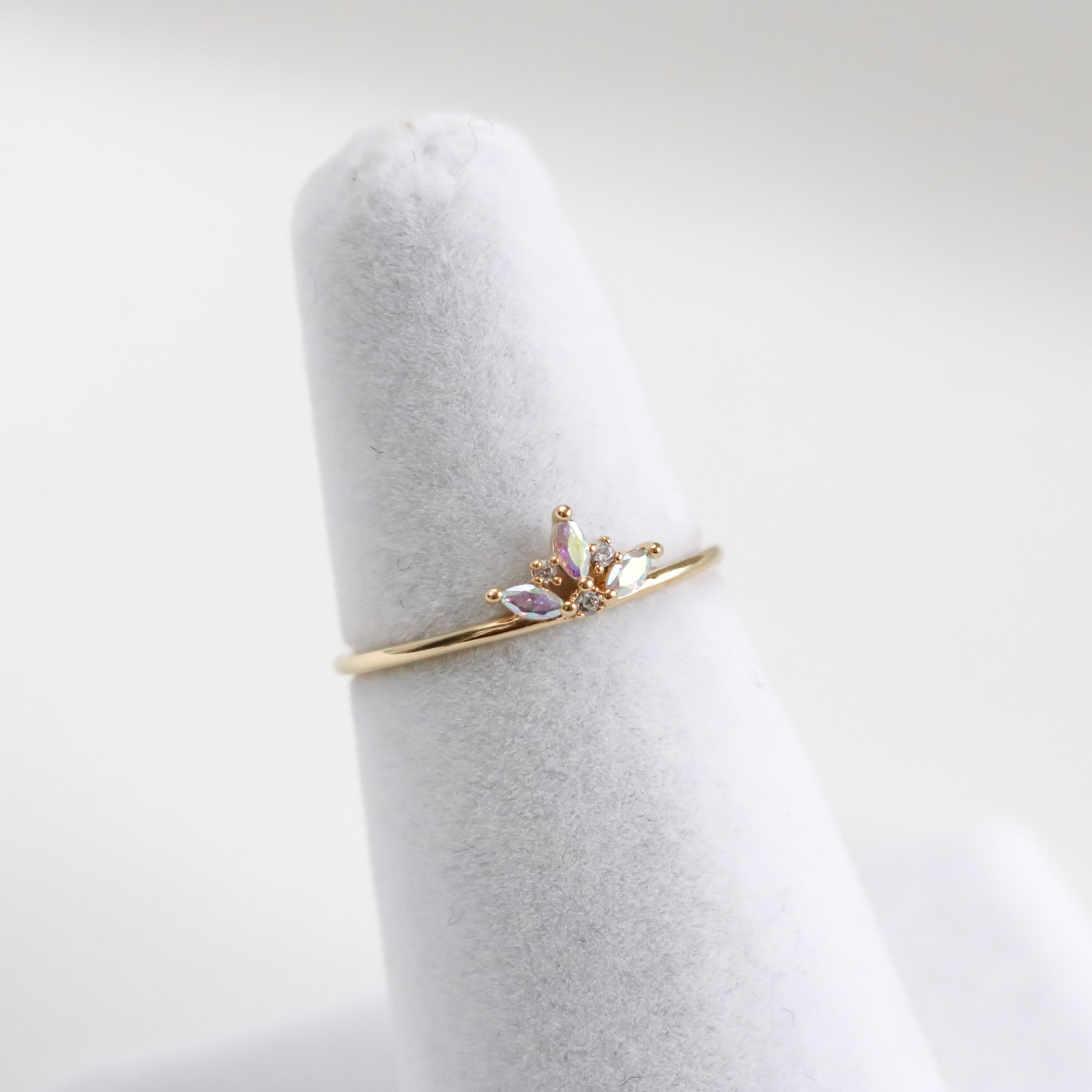 Get ready for compliments. The Beverly ring features three iridescent marquise crystals so it's gleaming from any side.